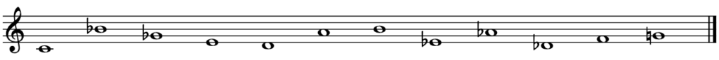 S’usen 12 escales diferents. La sèrie original (P0) és transportada 11 vegades i entre cadascuna d’elles hi ha una relació de mig to. La peça consta de 72 compassos.