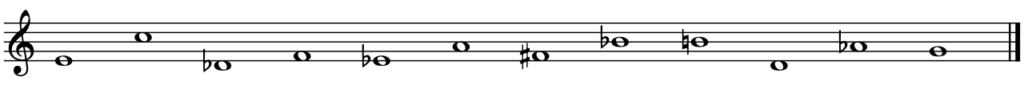 Fúria és una obra dodecafònica per a orquestra en compás 4/4. Té 3 moviments. La serie original utilitzada és: